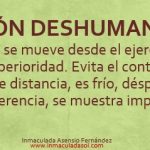 Y respecto a cómo podemos reconocer a un profesional inhumano en el trato directo porque se mueve desde el ejercicio del PODER, la superioridad. No es empático, se muestra frío y alejado de la persona. Evita el contacto visual, interrumpe, muestra indiferencia, se muestra impaciente y molesto, cosifica, etc.